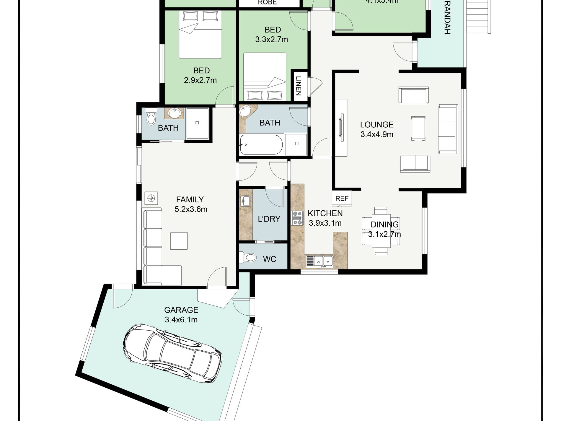 + Well appointed bathrooms, internal laundry with additional toilet